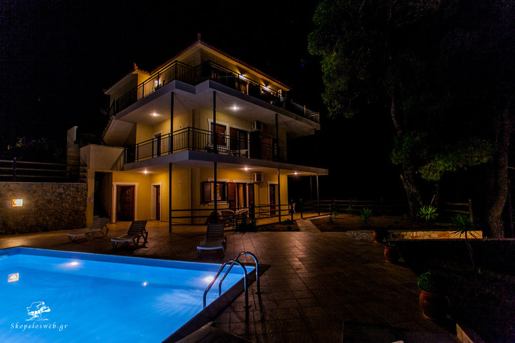 Η Villa Evelyn διαθέτει 4 μεγάλα αυτόνομα διαμερίσματα με υπέροχη θέα τη Σκόπελο, τη θάλασσα, το πράσινο για υπέροχες διακοπές στο αιγαιοπελαγίτικο νησί Σκόπελος