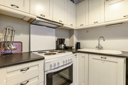 Entrance , living room with a sofa bed ( length 1.60m), fully equipped kitchen, fan although the house is cool, wc with a washing machine.